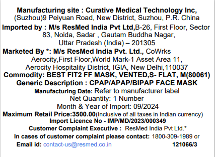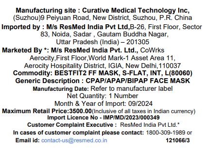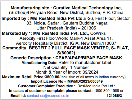 | 80061 | BestFit2 Full Face Mask, S-flat, M | 169 mm (H) x 106 mm (W) x 101 mm (D) |